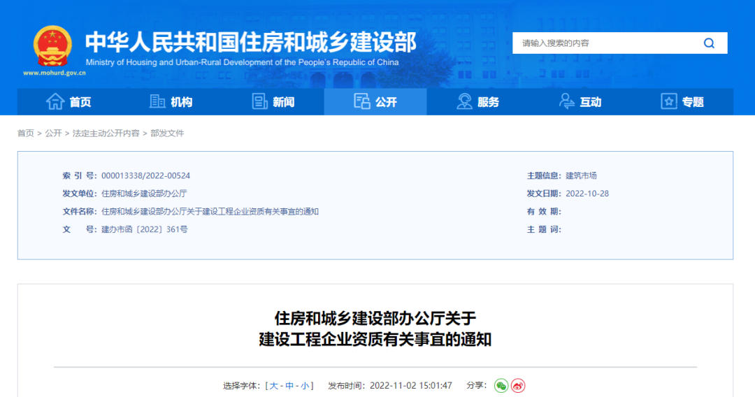 11月2日,住建部官網(wǎng)發(fā)布《住房和城鄉(xiāng)建設(shè)部辦公廳關(guān)于建設(shè)工程企業(yè)資質(zhì)有關(guān)事宜的通知》: 我部核發(fā)...